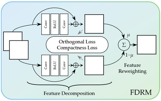 There were two feature-fusion methods based on different fusion blocks used in this study, which were DBAM ST-PA_RCNN and FDRM ST-PA_RCNN. The following is mainly centered around these two fusion blocks: Dual-Branch FPN and Attention Mechanism (DBAM) and Feature Decomposition and Reweighting Model (FDRM). The structure of the DBAM is referenced in article [38], and the FDRM is the main contribution and innovation of this subsection.