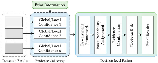 Decision-level fusion is at a high level in image fusion. In its process, extracted features are fed into a feature identification module to obtain initial results. These initial results are consolidated by decision fusion for final results. Decision-level fusion presents a strong ability to integrate results and to develop complementarity of strengths among models to the extent possible with better fault tolerance. However, the requirements for pre-processing, feature extraction, and the determination of results are relatively high.