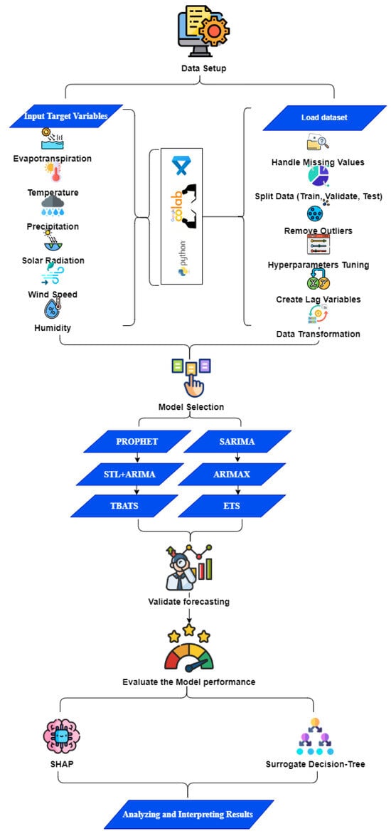 Khan, S.; Wang, H.; Nauman, U.; Dars, R.; Boota, M.W.; Wu, Z. Climate Impact on Evapotranspiration in the Yellow River Basin: Interpretable Forecasting with Advanced Time Series Models and Explainable AI. Remote Sens. 2025, 17, 115. https://doi.org/10.3390/rs17010115