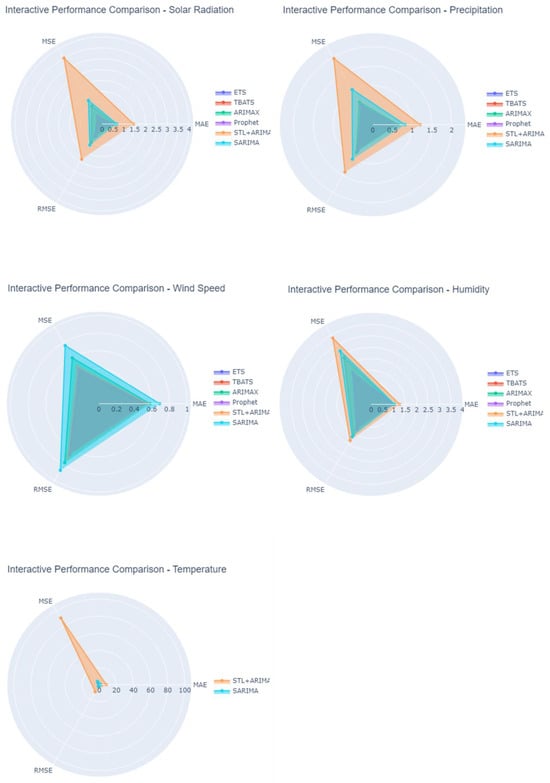 | Solar Radiation | SARIMA(1, 1, 1)(1, 1, 0, 12) | 492.34 | 505.71 |