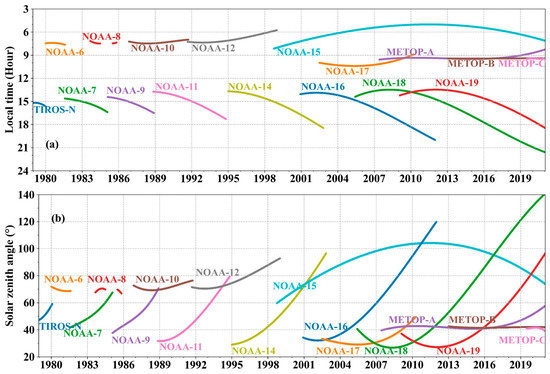 - Heidinger, A.K.; Straka, W.C., III; Molling, C.C.; Sullivan, J.T.; Wu, X. Deriving an inter-sensor consistent calibration for the AVHRR solar reflectance data record. Int. J. Remote Sens. 2010, 31, 6493–6517. [Google Scholar] [CrossRef]