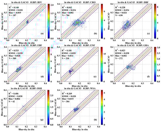 - Wang, K.; Liang, S.; Schaaf, C.L.; Strahler, A.H. Evaluation of Moderate Resolution Imaging Spectroradiometer land surface visible and shortwave albedo products at FLUXNET sites. J. Geophys. Res. Atmos. 2010, 115, D17107. [Google Scholar] [CrossRef]