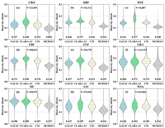 - Sánchez-Zapero, J.; Martínez-Sánchez, E.; Camacho, F.; Wang, Z.; Carrer, D.; Schaaf, C.; García-Haro, F.J.; Nickeson, J.; Cosh, M. Surface ALbedo VALidation (SALVAL) Platform: Towards CEOS LPV Validation Stage 4—Application to Three Global Albedo Climate Data Records. Remote Sens. 2023, 15, 1081. [Google Scholar] [CrossRef]