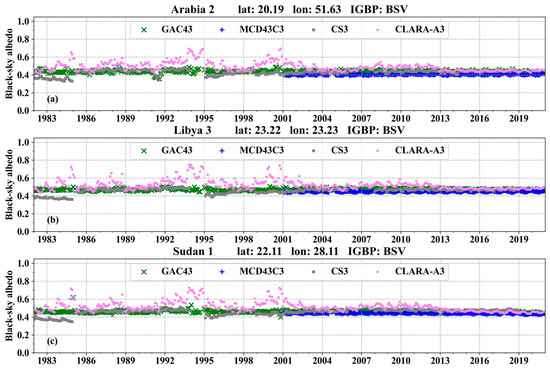 - Sánchez-Zapero, J.; Camacho, F.; Martínez-Sánchez, E.; Lacaze, R.; Carrer, D.; Pinault, F.; Benhadj, I.; Muñoz-Sabater, J. Quality assessment of PROBA-V surface Albedo V1 for the continuity of the copernicus climate change service. Remote Sens. 2020, 12, 2596. [Google Scholar] [CrossRef]