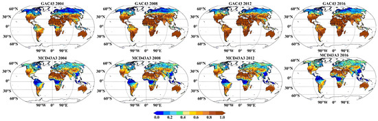 - Wang, Z.; Schaaf, C.B.; Sun, Q.; Shuai, Y.; Román, M.O. Capturing rapid land surface dynamics with Collection V006 MODIS BRDF/NBAR/Albedo (MCD43) products. Remote Sens. Environ. 2018, 207, 50–64. [Google Scholar] [CrossRef]