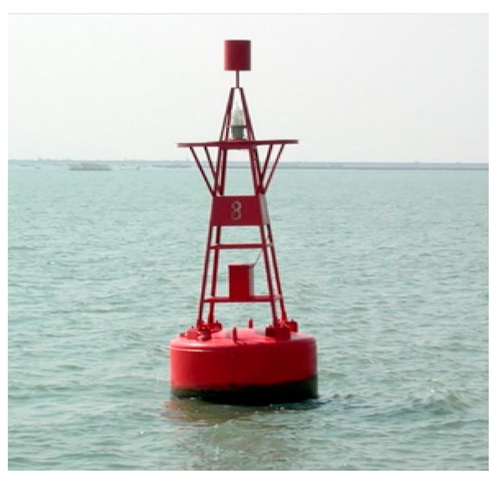 The SDRDSP (Sea-Detecting Radar Data-Sharing Program) dataset is publicly released by the Naval Aviation University [15]. During data collection, the radar was set up at the Yantai First Seawater Beach testing site. Two SPPR50P radar units are deployed, operating with HH polarization for transmission and VV polarization for reception, and running in a staring mode. The radar is mounted at an altitude of approximately 80 m, operating in the X-band. It uses a solid-state power amplifier combined with a pulse transmission system and employs pulse compression technology. The transmitted pulse width ranges from 40 ns to 100 µs, with a transmitted power of 100 W. The radar has a range resolution of 6 m, a frequency range of 9.3 to 9.5 GHz, and a pulse repetition frequency of 2000 Hz. The target is a steel navigation buoy, as shown in Figure 1. The time-domain echo data for the target is depicted in Figure 2. The Signal-to-Clutter Ratio (SCR) for four sets of data is calculated using Equation (1), as shown in Figure 3. The average SCR (ASCR) represents the mean signal-to-clutter ratio, and it can be observed that the SCR fluctuates around its mean value. This variation is due to the wave motion of the sea, which causes continuous changes in radar echo power.