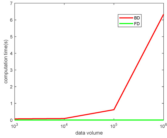 As discussed earlier, using FD as the separability criterion can effectively reduce computation time, but it inevitably results in some performance loss. Setting the false alarm rate to 0.001 and the cumulative number of pulses to 64, the detection probabilities under different sea states and large grazing angles using FD and BD as separability criteria are calculated, as shown in Table 4 and Table 5. It can be seen that in most cases, using FD as the separability criterion achieves comparable detection performance to the BD detector. However, in sea state 4 and airborne test data 8 and 9, the detection performance of the FD criterion is slightly worse than that of BD. Therefore, when the number of candidate features is small, using BD as the separability criterion yields better performance. When the number of candidate features is large, using FD as the separability criterion can greatly improve computational efficiency while maintaining acceptable performance. The choice can be made based on the actual scenario. Since there are only 9 candidate features in this study, BD is chosen as the separability criterion for subsequent validations.