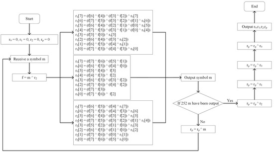 Implementation of the RS(256,252) algorithm in a cyclic XOR architecture. This operational flowchart illustrates the detailed computational process of the algorithm from start to end.