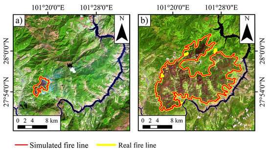 - Ning, J.; Liu, H.; Yu, W.; Deng, J.; Sun, L.; Yang, G.; Wang, M.; Yu, H. Comparison of Different Models to Simulate Forest Fire Spread: A Case Study. Forests 2024, 15, 563. [Google Scholar] [CrossRef]