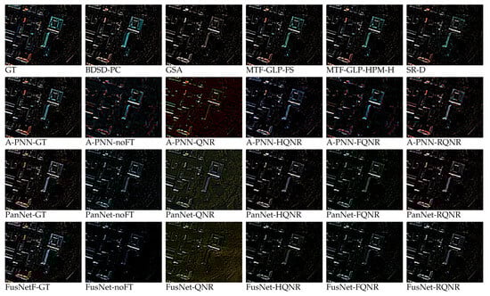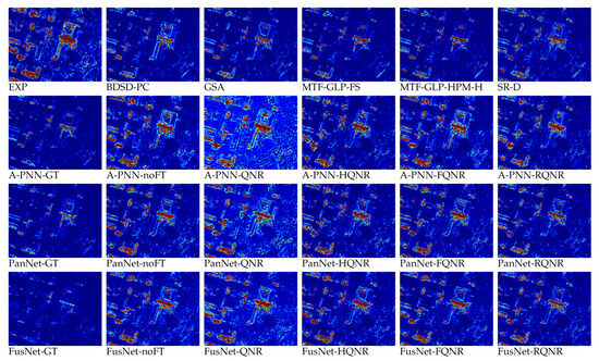In this study, three widely used pansharpening networks were trained using cost functions based on the most popular image quality measures, including many that had not previously been applied to this task (Hybrid Quality with No Reference (HQNR) [84], Filter-based Quality with No Reference (FQNR), and Regression-based (RQNR) [85]). Among these, RQNR emerged as a particularly effective alternative to traditional measures. It demonstrated superior performance not only in terms of the quality of the fused images but also in its ease of implementation. RQNR requires far fewer computational resources, making it a more efficient choice without compromising on performance.
