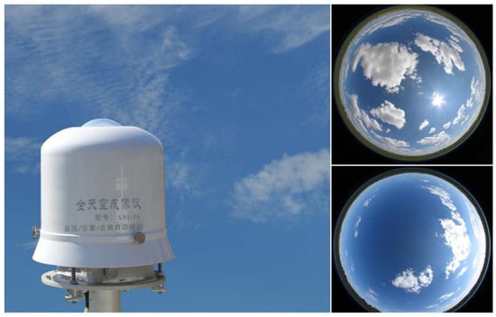 Ground-based cloud imaging collected by an all-sky imager. (The terms on the device are displayed in Chinese characters, which means: All Sky Imager, model ASI-16, automatic observation of cloud condition/cloud amount/cloud height.).