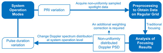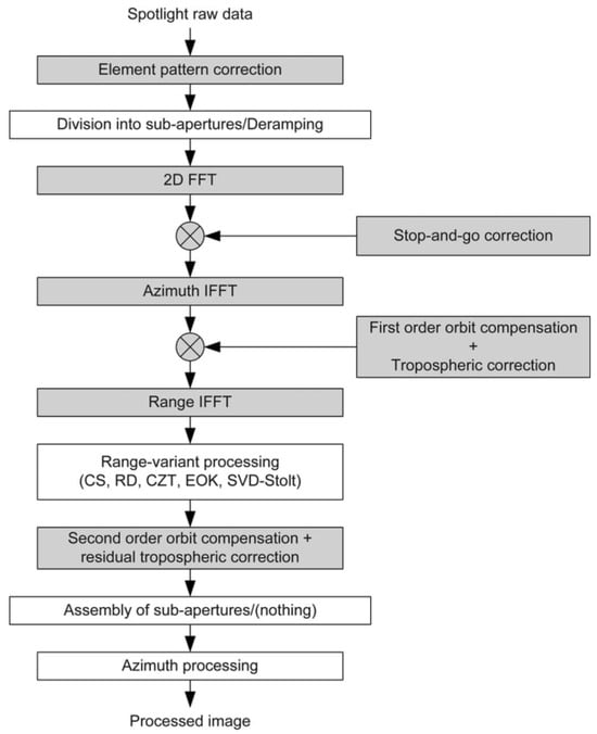 Block diagram of spotlight/sliding spotlight imaging method based on modified RMA (Reprinted with permission from [48]. Copyright © 2024, IEEE).