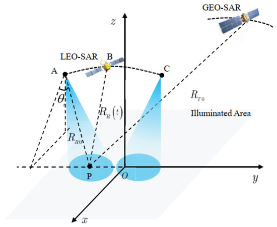 Observation geometry of GEO-LEO BiSAR (Reprinted from [96]).