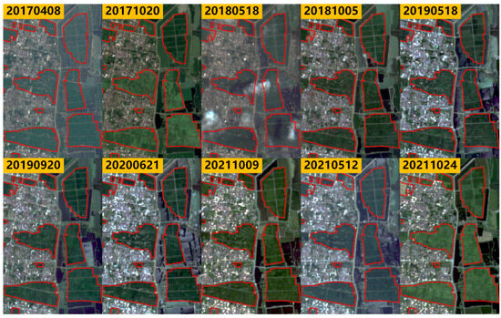 - Jo, H.W.; Lee, S.; Park, E.; Lim, C.H.; Lee, W.K. Deep Learning Applications on Multitemporal SAR (Sentinel-1) Image Classification Using Confined Labeled Data: The Case of Detecting Rice Paddy in South Korea. IEEE Trans. Geosci. Remote Sens. 2020, 58, 7589–7601. [Google Scholar] [CrossRef]