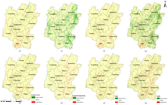 - Chen, Y.; Zhang, J.; Zhang, P.; Wang, Z.; Kuang, W.; Chen, J. Assessment of land degradation in the Beijing-Tianjin-Hebei region from 2000 to 2020 based on SDG15.3.1. J. Spatiotemporal Inf. 2023, 30, 560–573. (In Chinese) [Google Scholar] [CrossRef]