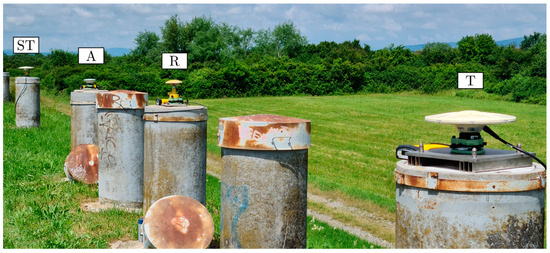 The realization in the test field, i.e., the determination of reference values of short-baseline components, was performed through an independent measurement campaign, which included a GNSS survey and a high-precision terrestrial survey of a micro-network using a total station and precise leveling. Precise coordinates of stations T, R, A, and ST were determined with submillimeter accuracy at a level of 0.1–0.2 mm [32]. Using these coordinates, reference values of short-baseline components were derived and are presented in Table 3.