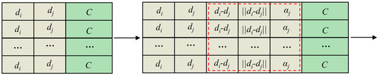 where is the coordinate of the central points, represents the neighboring point coordinate of , and denote the coordinate difference and Euclidean distance between and , respectively, and is the angular information of the neighboring point relative to the center point. Consequently, we obtain four-dimensional features to depict the relationship between the center and the local points.