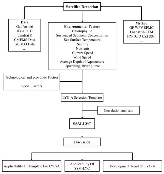 Many studies have been performed to explore suitable habitats or aquaculture areas for economic fish [6,7,8,9]. Fernandez Tejedor Margarita et al. [10] used Sentinel-2 satellite data to propose a new inversion model of Chlorophyll-a (Chl-a), which could more accurately estimate the distribution of Chl-a in offshore areas (northwestern Mediterranean), thus providing help for the location of shellfish culture areas. Claude E. Boyd et al. [8] analyzed the elements of North American catfish and seawater environment through element analysis to find suitable breeding locations for catfish. Furthermore, scholars [11] also pointed out that the influence of environmental factors on the physiology and biochemistry of large yellow croakers should be determined. Meanwhile, a series of horizontal experiments on temperature, salinity, and biological factors were conducted in artificial large yellow croaker areas, and environmental conditions suitable for the growth and survival of large yellow croaker were obtained. Environmental DNA (Deoxyribonucleic Acid) [12] was applied to study the distribution and abundance of large yellow croaker in the East China Sea and established a prediction model of the large yellow croaker fish situation based on relevant environmental parameters. However, there is a lack of research focusing on environmental factor templates based on existing aquaculture areas and multi-source high-resolution data to evaluate potential aquaculture sites.