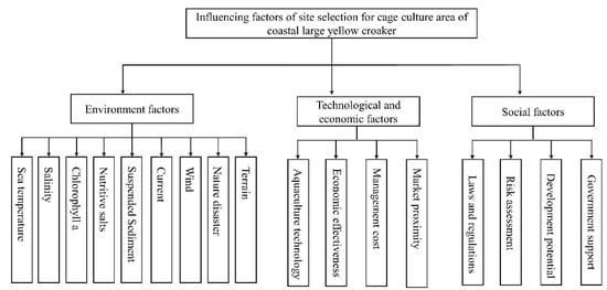 Influencing factors of site selection for cage aquaculture area of coastal large yellow croaker.