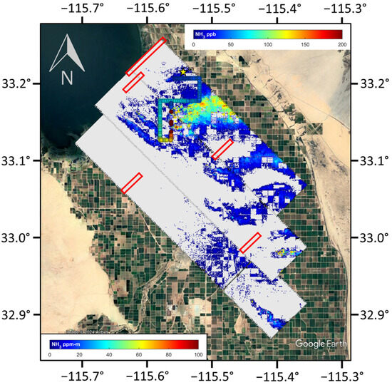 Tratt, D.M.; Chang, C.S.; Keim, E.R.; Buckland, K.N.; Alvarez, M.; Kalashnikova, O.; Hasheminassab, S.; Garay, M.J.; Miao, Y.; Porter, W.C.; et al. Airborne Mapping of Atmospheric Ammonia in a Mixed Discrete and Diffuse Emission Environment. Remote Sens. 2025, 17, 95. https://doi.org/10.3390/rs17010095