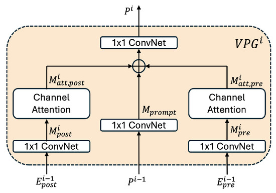 As depicted in Figure 3, our learnable VPG module is innovatively integrated at multiple stages within the foundational network to inject task-specific enhancements. The architecture of VPG is visualized in Figure 4.