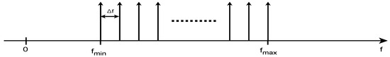 The spectrum data array, with a length of N, is acquired using an SFCW radar. The samples correspond to discrete frequencies spaced by within the closed frequency range from to .