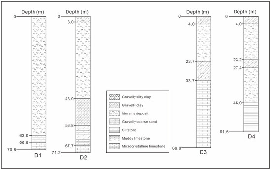 Figure 10. Schematic of rock units in boreholes D1, D2, D3, and D4.
