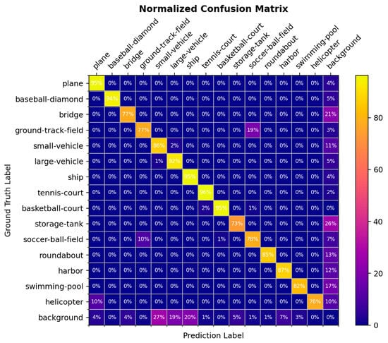 The confusion matrix of the DOTA-V1.0 dataset.