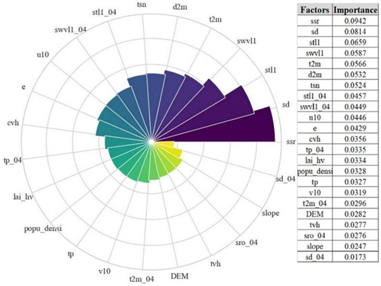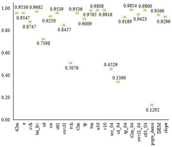 | monthly mean soil moisture in April of the year of occurrence occurrence | swvl1_04 (m3/m3) | |
