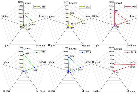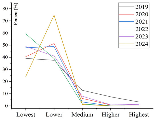 3.3. Frequency Analysis of Infestation Risk Levels of Pine Caterpillar