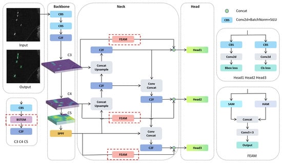 where denotes concatenation along the feature dimension. The BSTEM not only has a simple structure but also can enhance the contrast between the target and the background, especially in complex or low-contrast SAR images. This enhancement contributes to more accurate subsequent feature extraction and object detection processes.