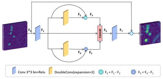 As shown in Figure 2, the input feature map is F0, which is converted to F1 after a convolution operation. F1 is subtracted from F2 to obtain F3, and F4 is subtracted from F1 to obtain F5. The process is as follows: