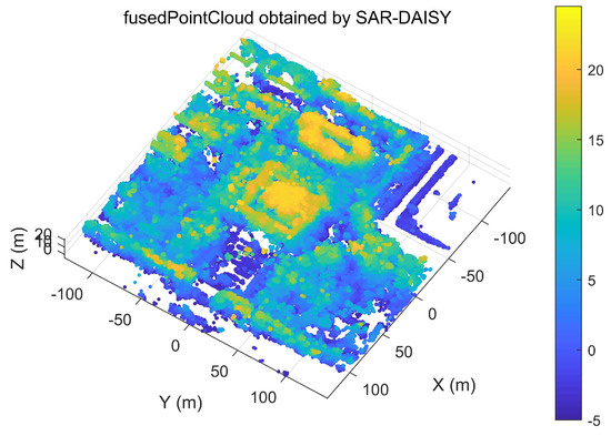 Three-dimensional point cloud of the urban area generated by the proposed method.