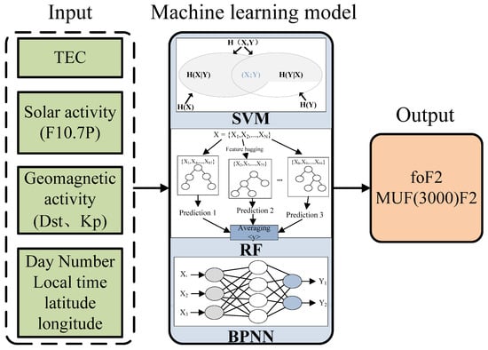 In this paper, Section 2 describes the principles of three machine learning models, RF, SVM, and BPNN, along with the input and output parameters of models and the datasets used. The estimation results of foF2 and MUF(3000)F2 are shown and analyzed in Section 3. Section 4 discusses the findings. Finally, Section 5 summarizes the entire article.