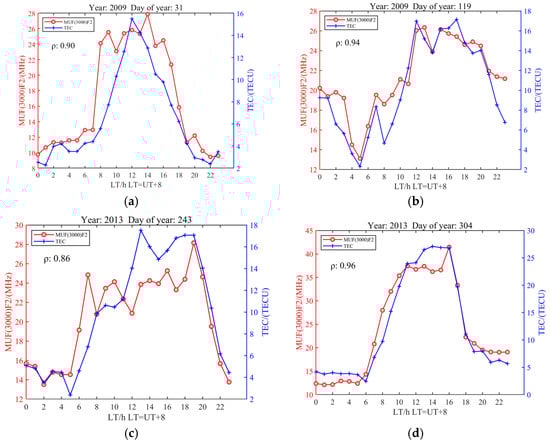 According to [], the foF2 is closely related to MUF(3000)F2, and the relationship between them is shown in Equation (1) [].