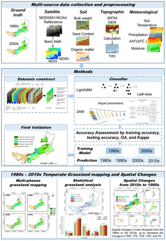 Xu, X.; Tang, J.; Zhang, N.; Zhang, A.; Wang, W.; Sun, Q. Mapping Temperate Grassland Dynamics in China Inner Mongolia (1980s–2010s) Using Multi-Source Data and Deep Neural Network. Remote Sens. 2025, 17, 1779. https://doi.org/10.3390/rs17101779