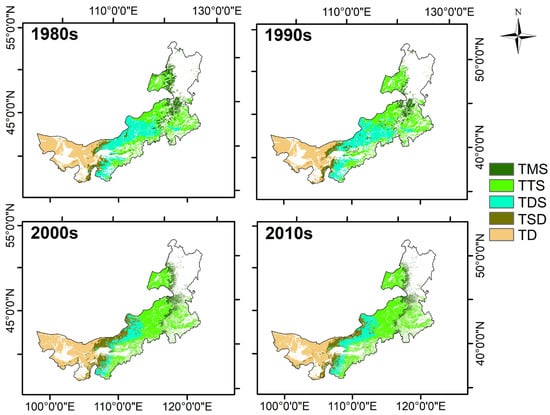 3.4. Grassland Types Changes from the 1980s to 2010s