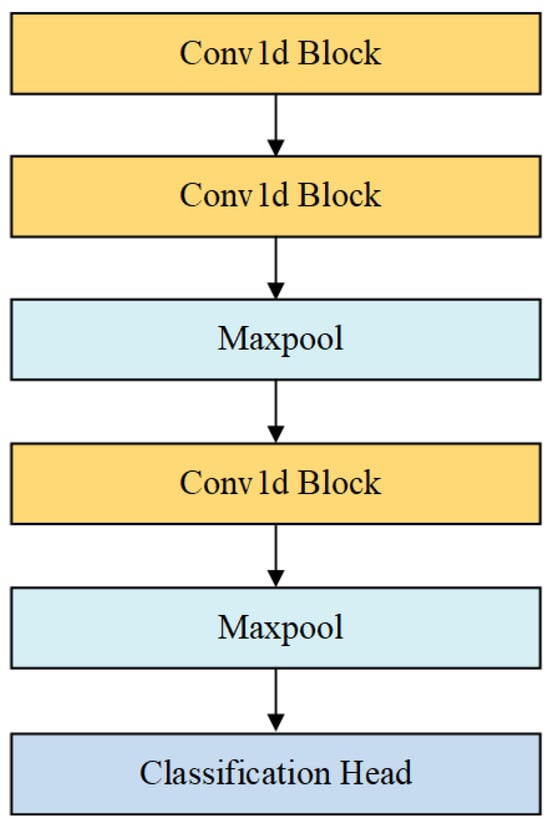 As shown in Figure 6, 1D-CNN consists of three Conv1d convolution blocks. Time-series data (where is the batch size, is the length of the input sequence and is the dimensionality of the input features) are inputted into the Conv1d convolutional blocks. Each convolutional block contains a Conv1d layer and a ReLU activation layer, which can be expressed by (13) and (14):