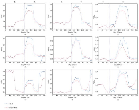 However, from the observation of Figure 10, we can see that there is still room for improvement in the prediction performance of AtEDLSTM in CLEC. Currently, it can only predict the general trend of the feature curve (baseline). The learning and prediction of periodic patterns (peaks and valleys) that fluctuate around the baseline due to phenological events (such as planting, heading and harvest) are still not ideal and require further optimization. These localized fluctuations often correspond to critical phenological information and are essential for distinguishing crop types. Under non-standard growing conditions such as drought or late sowing, crop growth trajectories often deviate significantly from typical patterns. Due to the inherently small inter-species differences, particularly between soybean and corn, which exhibit highly similar spectral and phenological curves, these crops are more prone to misclassification. Identifying crops under such non-standard conditions presents two major challenges: