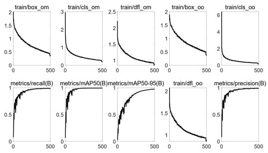 Next, the data set was used to generate the training and validation data sets in a ratio of 80:20, and the pre-trained YOLOv10 model was re-trained in order to develop the gas leakage monitoring model. The training loss and metric accuracy results of the model for 500 epochs are shown in Figure 6. As shown in Figure 7, the model was able to achieve a detection accuracy greater than 90% on the test images.