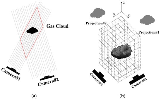 According to Equation (1), assuming that the concentration distribution of the gas cloud is uniform, each absorbance image of the leaking gas is a linear integral of the gas cloud corresponding to its infrared absorption in the 3D field.