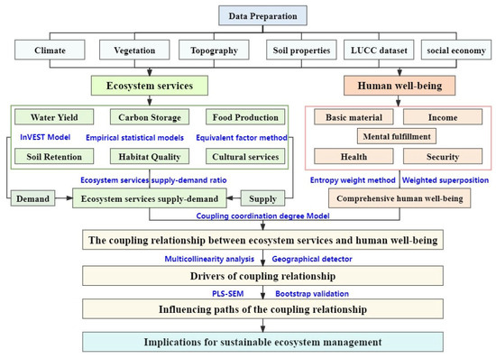 - Wang, C.; Wang, X.; Wang, Y.; Zhan, J.; Chu, X.; Teng, Y.; Liu, W.; Wang, H. Spatio-temporal analysis of human wellbeing and its coupling relationship with ecosystem services in Shandong province, China. J. Geogr. Sci. 2023, 33, 392–412. [Google Scholar] [CrossRef]