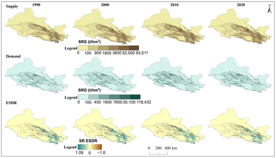 3.1. The Spatio-Temporal Dynamics of Ecosystem Service Supply–Demand