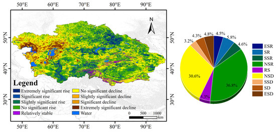 Distribution of different spatial trends of the ASAEI and the proportion of area occupied by the region.