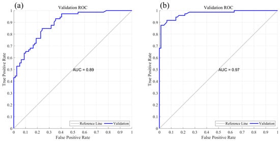 To demonstrate the reliability of the assessment model, the receiver operating characteristic (ROC) curve is used to validate the results [45]. The ROC curve is derived from the model’s confusion matrix, plotting the false positive rate (FPR) on the X-axis against the true positive rate (TPR) on the Y-axis. The area under this curve, known as the AUC, ranges from 0 to 1 and serves as a widely accepted measure for evaluating binary classification models. Generally, a higher AUC value indicates better model performance.