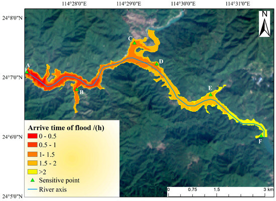 Subsequently, this study investigates the mechanisms of energy accumulation and release during short-duration, high-intensity outburst floods by implementing dynamic breach boundary conditions. It also establishes a definition for dam break time, thereby addressing the limitations of conventional methodologies in analyzing transient processes. While previous studies [51,52] have predominantly quantified flood risk through inundation depth alone, this work advances the field by systematically integrating outburst flood arrival time thresholds in downstream regions post-dam failure. This threshold provides critical time windows for emergency response and evacuation strategies for affected populations. Additionally, the majority of prior research has concentrated on the risk assessment of individual disasters, thereby neglecting the cascading effects associated with hazard chains. In contrast, this study develops a comprehensive forecasting framework that encompasses the entire process of landslide susceptibility assessment, prediction of the geometry of the hazardous reach of a dammed reservoir, and simulation of outburst floods, which systematically investigates the landslide—landslide dam—outburst flood disaster chain.