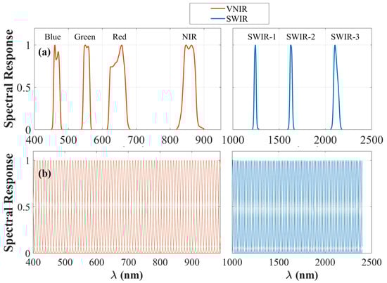 SRF of MODIS and ZY1-02D. (a) MODIS; (b) ZY1-02D.