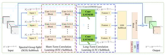 where means the long-term spectral-enhanced spatial–spectral feature. means the ConvLSTM3D layer.