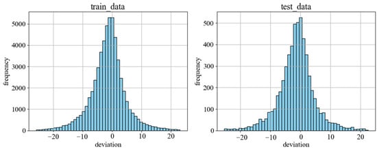 Prior to model construction, data cleaning was performed on the deviation between the remotely sensed PM2.5 concentration and dense station observations. The 3.5×interquartile range (IQR) criterion was adopted to identify and remove outliers, eliminating 0.87% of abnormal residuals to enhance model robustness and reliability. To ensure consistent distributions of key variables in both training and test sets, a stratified random sampling strategy was applied, partitioning the dataset into a training set (90%) and a test set (10%). Figure 3 shows the data distribution of training set and test set. The test set was exclusively reserved for final model evaluation and was not involved in any training process.