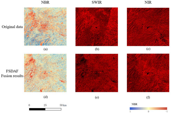 Within the study area, we conclude that the FSDAF model exhibits higher temporal and spatial fusion accuracies in both the spectral and spatial dimensions for the NIR, SWIR, and NBR indices.